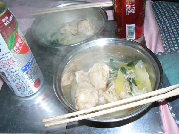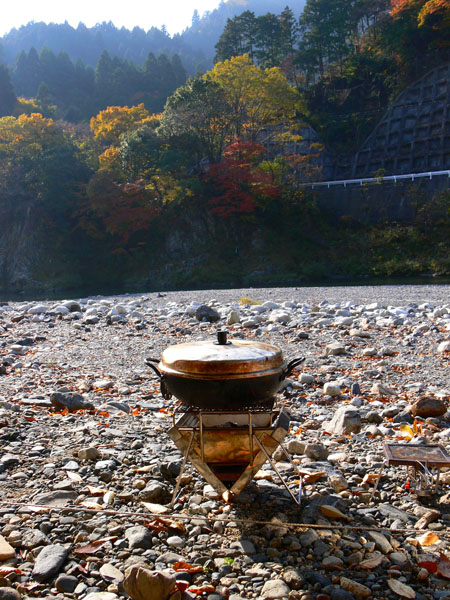 永源寺のお食事をば・・・(^^; 寒い季節の定番『ふらんぢぁ鍋』 今回の鍋はお久しぶりに下界で食べる鍋なので、炭火でまったりいただきました(^^ 下準備もへっちゃらピーです。 白菜の虫さんなんか怖くありません! しっかり洗って水に流して、手でちぎる事なく、ナイフで刻めるんですよ(^^; って、、、えばって云う事ではないみたいですね、、、ぅう。。 <ふらんぢぁ風トリガラ鍋> ◆鍋に入れたもの ・骨付き鶏肉(手羽元)1kg(二人でこんないっぱい食べれるかぁ?と思ったけど、、、、食べられました(T_T)ぅうっ) ・ニンニク(一番最初に入れて最後にとろけそうにホタホタに煮えたにんにくを食べるのが楽しみなのですが・・・、溶けてしまって無くなってました(T_T)うぅっ) ・ニラ ・長ネギ ・えのき ・モヤシ ・豆腐 ・餅入り巾着 ◆味付け ・ガラスープ ・鷹の爪 ・醤油 ・みりん(酒) ・味の素 ・クレイジーソルト(塩) ・京七味 ◆作り方 ・山でのガラ鍋はこちら ・元祖ふらんぢぁ鍋(トリガラ味)はこちら 骨付き鶏肉を使ったこともあって、ええ出し汁がでてました。 ガスではなく、炭火での鍋だったので、骨付き鶏肉はお肉が骨からポロッと取れるくらいに煮込んで煮込んで、ゆっくり時間をかけて食べました (^-^ そして・・・翌朝。 このよーにええ出し汁がでている鍋の残り汁で、雑炊です。 お鍋の後は、うどんにしようか、ラーメンにしようか、雑炊か・・・悩ましいところですが、今回は雑炊な気分。 というのも、山だとどうも麺類が多くなってしまって、ご飯系が恋しかったのです(笑) こんな綺麗な紅葉に囲まれて、 のびーっとご飯を炊いたりしてたら・・ 山行きも忘れてしまうってもんです(^^; やっぱ予想通り、最高の雑炊です! こんなにオイシイと、フランジアを添えてみたくなるってもんです(^^; さぁ、これをお読みになったあなたの今夜(?)のメニューは『トリガラ鍋』に決定!?