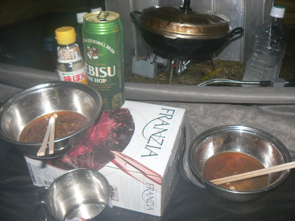 朽木大野河原(キャンプ場)の詳細は、こちら 朽木大野河原に関連する記事をもっと見たい方はこちら このキャンプ場(?)何故いつもこんなに賑わってるのか不思議でしたが、段々その理由がわかってきたように思います。 滋賀県のキャンプ場の多くは、禁止事項か多く価格も高い。 そんな中、なんでもありっていうといいすぎかもしれませんが、なんでもアリ的な場所がこの『朽木大野河原(キャンプ場)』 設備は水が出るだけ、トイレは公衆トイレが近くにあるだけでキャンプ場のものでもなく、だだっ広い河原を好きなように使えるってだけ、、、 禁止事項など何もうたっていず、ルールはゴミを仕分けて出すくらい。 キャンプ場とも言わず、ただただ一日一人300円の清掃協力金を徴収するというだけ。 そういうところがいいのかなぁと・・ キャンプ場のことは以前に記事にしていますので、上記リンク先を参照いただくとして・・・今回は反省会です。 反省しなければなりません(・_・) 我が家の反省点といえば、レンタル毛布に頼った事とテント水没事件と折角借りたイリジウムが使えなかった事くらいで、これといった大きな反省点はないのですが、パノラマコースを途中で引き返されたみなさまの反省でも聞かせていただこうと、参加してまいりました(^^; 早々に朽木大野河原に到着、テントを設営後、さわらび草原より『蛇谷ヶ峰』へ登頂(この様子は別記事にて) ザクザクザクザクッ・・・・ ![]() 要所要所に現れる、この和みの5本指ソックスは・・・ トラミちゃん! ![]() あぅ。。。 拉致されてゆく、ogawaステイシー・・・ ![]() 私たちが一番に到着!、テントを設置していたのにも関わらず、蛇谷ヶ峰に行っている間に横にはキャンカーの村(その数20台足らず!)ができてしまい、爽生さんたちは50m程上流に集結した模様、、、。みなさまのおそばに拉致していただきました(^^; キャンピングカーやドラえもんのお道具箱のようなすんごい車中泊車が並ぶ中に、我が家の軽自動車とステイシーがコソッと混じっています。。。 ほんま、混じっててええんか?って感じですね(^^; ![]() 暗くなったら、反省会(?)のはじまりはじまりー(^^; 自制心のない私は、次々と現れるご馳走をついついっぱい食べてしまって、またひとまわり大きくなりました(T_T)ぅう これは一番反省すべきところですね(><)。 ![]() 反省会中にもかかわらず、こそっと焚き火を楽しんでいるラブラブ夫婦を発見! 反省することはないんですかぁぁぁ!? ええかんじなので、ヨシとしましょう(^^*テレテレ と・・・反省会?宴?は、続くのでした。 反省会の詳細はこちら ええ、ええ、ふらんぢぁブログではありません、、、ゆきちさんのブログです。 (たぶん、きっと、書いてくださるはず。。。書いてね) 実は・・・、折角撮った写真、消しちゃったようです。。。。。(号泣) SDカード、以前の写真が残ったままフォーマットしないで写し始めてしまって、すぐにカードが満杯になり、取り込み済みの写真をモニターで確認しながら消していたつもりなのですが・・・、 どうやらこの時に撮ったばかりの写真も一気に消しちゃったらしいのです(^^;とほほ・・・ 『らしい』という他人事のような表現なのは、、やってしまった記憶も全くなく、、、 どうやら、かなり酔っ払ってたようです(^^; 山の師匠ビビアンさんにお会い出来て山関連の話を聞いたり、写真の話やお料理の話をはじめ、あまりにも楽しくて、、、美味しいお酒についつい飲みすぎたのが原因かと・・・ テントに帰るなり、バタンキューのダーリンをシュラフに入れたり、ジャージに着替えさせるのが大変だったりの記憶はあるのに、テントに帰った記憶がないんです(^^;ぅう。。 ま、こうして、私はまだ断片的な記憶はあるのですが、、、、ダーリンに至ってはすでにその前から全く記憶がないようです・・・ ぅう。。。。 みなさまに迷惑をかけてやしないか、今更ながら心配になってきました(^^; 何もしでかしていなければいいのですが、、、、 ・・・・・ えー、あー、、、 参加のみなさま、おいしいものいっぱいありがとうございましたぁぁぁ ゴチになりました! そして、反省会には来られなかったけど、ダッチ鈴木さん、柿のお土産ありがとうございましたー まだ全部食べきってませんが、美味しかったです! よし、、、 これで反省会を終わらせていただきます。 ふらんぢぁとしては、、反省が増えたようです、、、(反省)