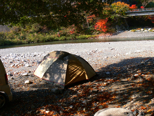 冬の頼りが届いて、今週、終に今シーズンの比良山系を諦め、湖東の山にやってきたふらんぢぁですが・・・・ ダラダラ寝過ごして、結局お目当てだった『日本コバ』行きはお休み、のんびり週末を過ごしました(^^; と、いうわけで、この週末のんびり過ごさせていただいた永源寺キャンプ場、ご紹介させていただきます。 拡大地図を表示 この度永源寺キャンプ場を選んだのは、翌日歩こうとしていた『日本コバ』の登山道が近かったからなのですが・・・・ 日本コバに行かへんのやったら、(永源寺キャンプ場は、エコロジー八風と経営が同じ?どちらの案内板にも其々の事が書かれています。)エコロジー八風の露天風呂に入ってきたかったかなぁ・・・と、今更ながら思ったり・・・ ま、ま、今回の記事では、それはおいといて・・・、 お泊りしてきた『永源寺キャンプ場』紹介いたしますね(^^; まず入口・・・なんですけど、結構っやっこしいのに、撮りそびれてしまいました(^^; 永源寺ダムを越えて・・・・よくよく注意しないと見落としそうなところに、入口の道があります(^^;ぅう。。。 無事到着したら(?)、次に気になるのは、トイレ、炊事場 左が炊事場で、右がトイレ。 その下に、我が家はテント設営。 寒くなってきたこの時期は、サバイバルでなくとも、どこへ行ってもほとんどが貸切です(^^ 山へ行きはじめてから(実はその前からですけどぉ)、キャンプ場の評価にあたってトイレってもののウェイトが非常に低いふらんぢぁkですが、、、(^^; それでも、トイレがあるっていうのは、安心しますよね(^^; しかも、ここ、ポットンながらも、電気は点きますし、トイレットペーパーも完備です! 少々臭いますが、めっちゃじゃなくて、少々です。 続いて、炊事場。 炊事場でっすって!(キャンプ場なんですもの、、、ありますよね、、) なんというか、水があるっていうだけでありがたいので、ついつい感動してしまいました(^^; ネギもえのきも白菜も・・綺麗に洗って食べる事ができました(ァァンナンテステキ) そしてサイト! 紅葉が綺麗ですぅ。めちゃんこのんびり、ボーっとできますよぉ だって・・・日本コバに行こうとここへ来たのに、それさえ忘れてしまうくらいですから(^^;タハハ 入口の坂は、かなり急なので4WDのほうがいいかもです・・ 大きい車は入れないかもしれません。 紅葉の時期、かなーり、ええ景色のところです。 そうそう、ここは、バンガローがあるんですよぉ 私たちはたぶん利用することはないだろうけど・・・ ついてるところと、ついてないところがりますが、バンガローの脇には、水場も完備です(^^ ここでひとつ、ストップしていた自家製露天風呂に入れたらもう天国気分なんですけどね(笑) ダーリン曰く、 山行きがお休みとなる冬、少しでも露天風呂計画を進めようかなぁ、、、とのこと!! おぉぉー ほんまかぁ?? 後、期待をっ(^-^)ワクワクウキウキ