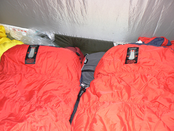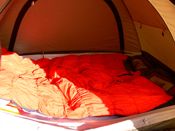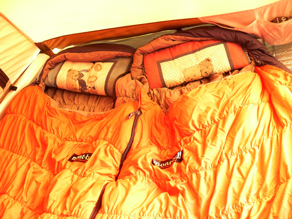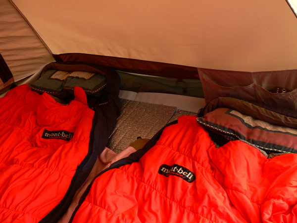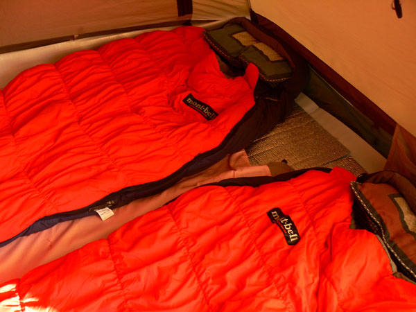 今回よりデビューした『シュラフ』をご紹介しておきましょう! このニューシュラフがデビューした日、宿泊地である東近江市、なんと氷点下だったらしいのです。。。 と、いうことをTakaさんのブログで知ってビックリ(^^; これは私たちがヌクヌク就寝できたシュラフを紹介しておかなければなりません(^^; ![]() モンベル(mont-bell) スーパーストレッチ バロウバッグ #3 アウトドアの師匠、爽生さんが、ふらんぢぁならコレ と、ススメてくれた一品なんですが、使用快適温度は0℃まで、なんとか-10℃くらいまでは使えるという、ダウンシュラフに引けを取らない(もちろんお値段はダウンの半額以下!)高性能。 しかし、とかく自分の殻に篭りがちのマミー型シュラフ(と、私は思っている)。 狭いテントの中、っていうかシュラフを広げたらテントに空きスペースなんてないのに、其々の殻に閉じこもって眠るのは寂しいじゃないですかぁ・・・ まぁ、喧嘩とかしたときは、こうやって殻に閉じこもって、目一杯離れられる限り離れて眠るのもいいでしょう(--; (でも、目一杯離れてもこれくらい。テントって狭いほど、ステキですね(^^*) ところがっ 私たちがこのシュラフに決めた、そのふらんぢぁ的決め技は、『連結』。 このシュラフ、右開き左開きがあるんですよ! イレギュラーな使い方なのでしょうが、右開き左開き、こうして一組に連結できます。 いつものように仲良しなときは、やっぱ連結してくっついて眠りたいですよねー 二人の方があったかいしー(^^* あぁ、喧嘩してるとき、マミーに閉じこもって離れるのもひとつですが、連結して蹴っ飛ばすっていうのもいいかもしれません。 あ、あとね、このシュラフ、『ストレッチ』の名の通り、びよよーんっと伸びるんですよ。 これも窮屈じゃなくって、いい感じです。 一応分類上はスリーシーズンの中に入っているので、冬用ではないようですが、0℃まで快適に眠れると云うこのタイプで十分だと思うんです。 マイナス何℃まで対応、とかになると、重さもそれなりに増えますしね。。 平地で使っている分にはこれで十分でしょうし、万一これでも寒いときには何か着込めばいいのですし。 あと、軽さという点では同じモンベルのダウンも気になりましたが、気を使いそうなのと、それとやっぱり値段、、、(-_- ってことで、これに決定! まぁ、Tシャツ一枚でこのシュラフにもぐりこんでヌクヌクってことではありません。 もちろんジジババシャツ、パッチを着用、その上からパジャマ代わりのTシャツとワシャパンを履いて、zippo君を装備して、くっついて眠りました(^^; でも、今までのシュラフだったら・・・この寒さ、インナーにフリースとか入れなければ、たぶん眠れなかったでしょう。 mont-bellのこのシュラフ、ほんまにスリーシーズンなん? かなりええんじゃないですかぁー と、一回使用後の感想でした。 最後に難点は・・・お片づけ。 コンパクトにするため、ギューギューに詰め込むのでなかなか大変(^^; 目にも止まらぬ速さで詰め込んで行くしなやかなダーリンの指先がステキですね(^-^ まぁ、これはそのうち慣れると素早く上手に片付けられるようになると思います。(ダーリンですから) ええ買い物をしましたので、ちょっと紹介しておきますね(^-^ PR