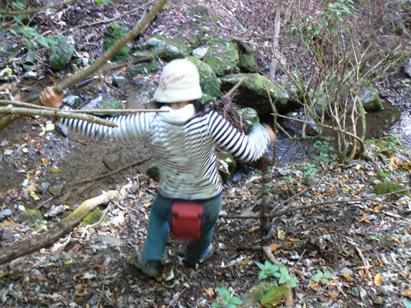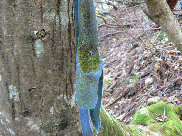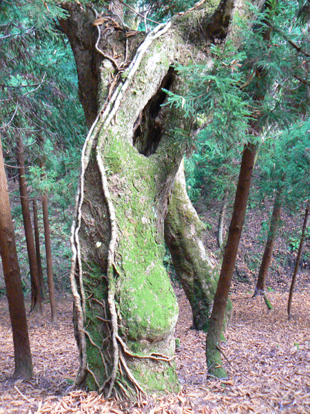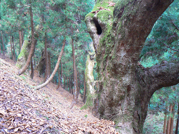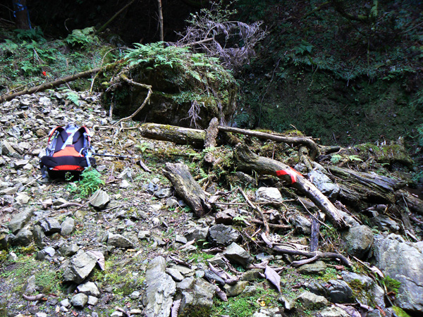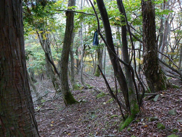 無事、ブログ容量も増えましたので、八淵の滝トレッキングの続き、書いて行きますね~(^-^ さて、八雲ヶ原キャンプ場跡を目指し、『七編返しの滝』を後にした私達を待っていたのは・・・・、 鎖場や梯子場の練習に来たんでしょ? と、ばかりに、またしてもロープ(^^; 引き続き壊れた梯子場(T_T) 壊れているにせよ、梯子が立てかけてあるくらいですから、もちろん摑まるモノや足をかける所はなかなか見つかりません、、、、 壊れた梯子の壊れていない箇所を利用しながら、崖の突起を探します。。。 ううっ。 今度の梯子は(これの前に比べると)、立派そうですよぉ~(^^ホッ ダーリンに続いて登って行きます。 その上でがんばってくれていた『命の木』 鎖やらロープやらいっぱい括り付けられています。 怖いのは何も崖登りだけじゃありません。。 ザックが木にひっかかって、バランスを崩すダーリンにドキッ! 寿命が100年(?)縮みました。(なんぼ長生きする気なんや(^^;) 続いて、100年寿命を縮めた私が渡ります(^^; ダーリンが登り、 私が後に続き、 いつになったら、サクサクとリズム良く歩くことが出来るのやら・・・ 時間は既に12:30。 八雲ヶ原に着いたらあったか~いラーメンを食べる予定なのですが・・・ あとどれくらいなんでしょ? 相変わらずロープや鎖、梯子が次から次へと出て来ますが、さっきのザックが引っかかって落ちそうになった丸太のところ以降、どうしよう(>_<)ちゅうような怖いところはありません。 案内板に『八雲ヶ原』の名前が登場し始めました! ほっ。。。 豪快なコースでした(シミジミ) って、もう着いた気になるのは、ちょい早すぎませんかぁ? 案内板に『八雲ヶ原』の名前が登場しただけで、まだ到着していませんから(^^;(^^; ・・・、道標が枯葉に埋もれています(^^; 『まぼろしの滝』って??? 八雲ヶ原は、このまぼろしの滝の直ぐ先のはず。 先が見えて来ました(^-^! うーん。。。 案内板の示す方に『滝』は見当たりません。。。 暫く探してみたのですが、『まぼろし』やし・・と、無理矢理納得して八雲ヶ原目指し出発! そこから、どれくらいの距離でしょうか、、、 5分くらいで急に目の前に、『八雲ヶ原』が広がりました! 八雲ヶ原キャンプ場跡地 跡地ですから、トイレや炊事場はありませんが、今もテン場として使われているようです。 と、いうことで、次の記事は、『八雲ヶ原(キャンプ場跡地)』をレポートいたしまーす! 決死の思いで歩いた八淵の滝~八雲ヶ原。 ブログをお読み頂いている皆様も、臨場感あふれるレポートに手に汗されたかと思いますが、しかし、イッチバン怖かったところは、実は写真に撮れていないんです。 ダーリンも私も、写真どころではなくって。 テントを担いで八淵の滝~八雲ヶ原を歩いてみようという方、相応の覚悟の上、お臨みください。 ・・・・・・・・・・・・・・・・・・・・・ ※以下、長編となった『八淵滝』の全記事へのリンクです(^^; 1.八淵の滝(序章) 2.八淵の滝1~お散歩コース 3.八淵の滝2 ~テントは張れるの?~ 4.八淵の滝3~ミルク鍋ってどうよ?! 5.八淵の滝4~屏風が淵と貴船の滝、遭難の碑 6.八淵の滝5~七編返しの滝 7.八淵の滝6~八雲ヶ原への道 8.八淵の滝7~八雲ヶ原キャンプ場(跡) 9.八淵の滝8~望武小屋-下山