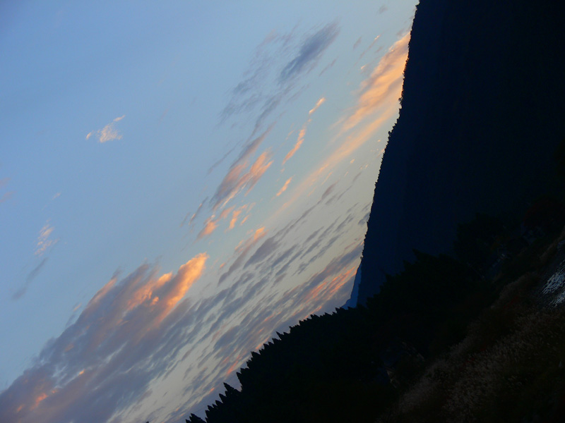 順番に参ります(^^; ってことで、 地蔵山3(朽木栃生~朽木村井)の続きです。 13:57『地蔵山』山頂に無事到着、ホッと一息(^-^ 好天に恵まれ、竹生島や琵琶湖の対岸まで見えています! ラッキーとばかりに、山頂の写真をパシャパシャ(^-^ だけど・・・ 明るいうちに降りるには、余裕を少し見て早めに出発しなければなりません。。。 地蔵山山頂まで、登山地図のコースタイム程度の時間で登れましたが、しかしそれでも私たちの予定よりは時間がかかってしまいました(甘く見てた、、、-_-)。 軽トラが登って来た林道を降りて行けば、村井に出れるようなので、ここはひとつ腹ごしらえをしてからに(^^; 山頂で食べようと、折角(ダーリンが)ランチセットを持って登ってきたのですから、食べずに降りるなんて悲しすぎですよね! お腹一杯になったら、足取りも軽く・・・・ のはずが、、、膝、ガクガクやん(T_T) でも、まぁ、迷う事のない軽トラ街道(?)、 足をずりずりしながらゆっくり下りて行くと・・・ 登山地図や地形図ではよく分からなかったのですが、この林道と平行、時に交わりながら、登山道もあるようです。 正式に(?)登山道を歩いて来た人の案内板です(^^; 林道出口付近、パワーショベルが信じられないような工事をしていました。 なにが信じられないかって、上の写真、路上から数十メートルの山をパワーショベルが崩してるんです。 山道は終了ですが、ここは村井、車を停めた『栃生』バス停まで戻らなくてはなりません。 ほんのり頬染める空の写真を撮りながら、 ゆっくりと 国道を栃生へ向かって戻って行ったのでした(^^ いつの間にか、膝の痛み忘れて